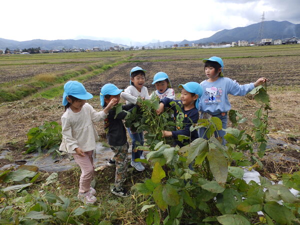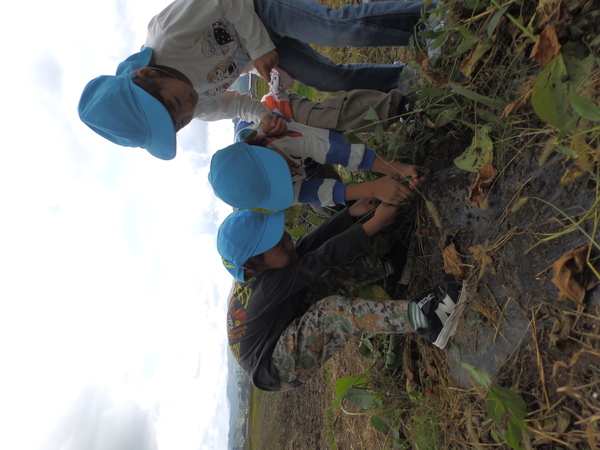 | 秋は美味しいものがいーっぱい(≧◇≦)✨枝豆にカボチャ、大根もたくさん収穫できました。お給食の先生に調理してもらってみんなで仲良く美味しくいただきました❤いつもはお野菜が苦手な子もおかわりしちゃったね!笑 |