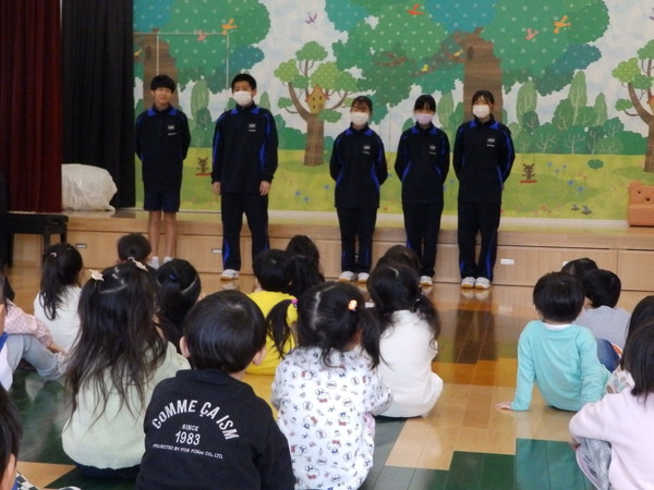| 石川中学校の生徒さん5名がふれあい体験デーで来園してくれました(*^-^*)。各クラスでこどもたちと一緒に色々な活動や体験をしたり、たくさん遊んでもらってこどもたちも大喜びの二日間でした。 生徒さんの中には卒園児も居てとても懐かしかったです!また、いつでも遊びにきてね❤ |