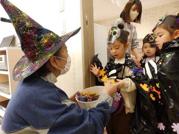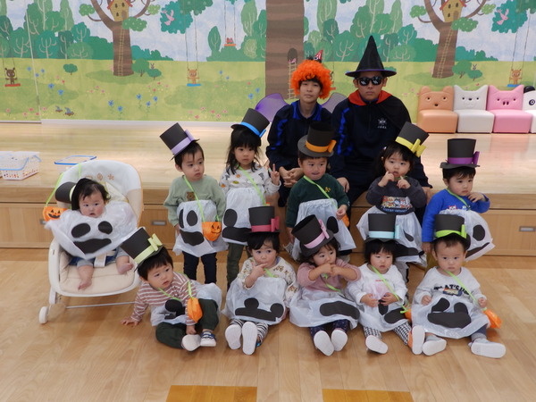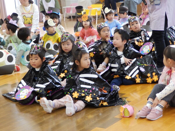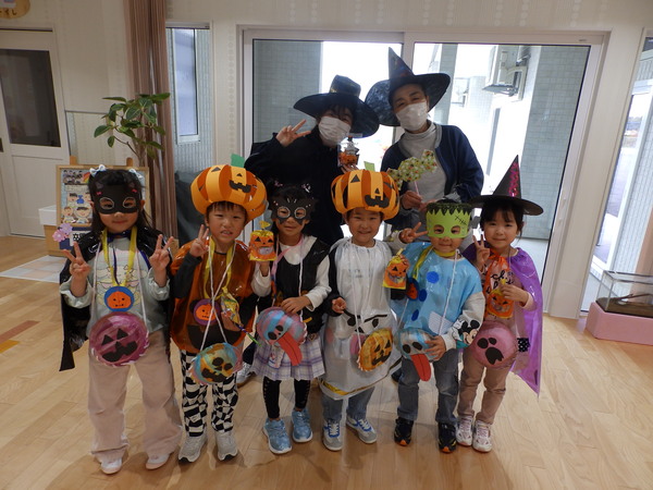 | HAPPY★HALLOWEEN🎃!!パーティーを楽しみにしながら仮装グッズを製作してきたこどもたち。当日は中学生のお兄さんお姉さんにもお手伝いしてもらって変〜〜〜身!!(∩´∀`)∩✨✨とってもかわいいおばけたちが園内を歩いて「Trick or Treat!🎩お菓子をくれなきゃイタズラしちゃうぞ〜👻」たくさんのお菓子をもらって笑顔が溢れていました❤ | ||