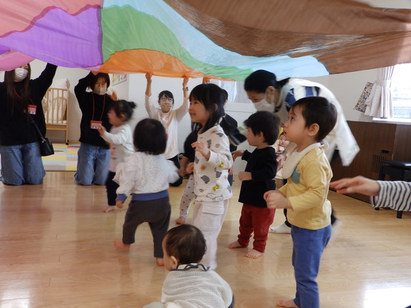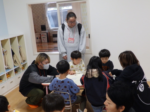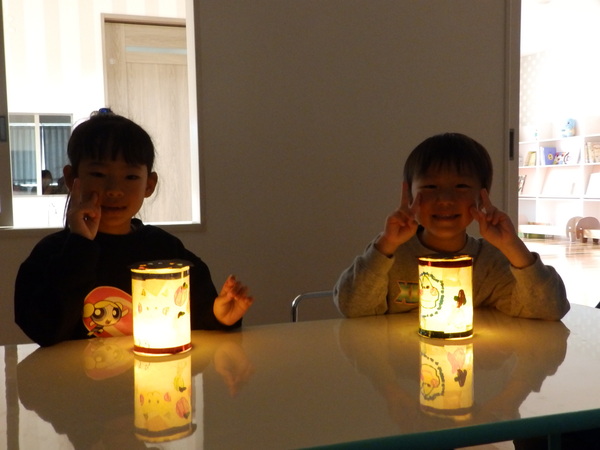 | いちご組🍓:絵合わせカードでゲームをしたり、お家の方に協力してもらってカラーポリバルーンで遊んだよ❤ みかん組🍊:牛乳パックを使ってフリスビーを作ったよ。廊下で飛ばしっこ競争もしたね✌ も も組🍑:親子でリトミックをしました。走ったりジャンプしたり楽しかったね(*^-^*)✨ ぶどう組🍇:切ったり✂貼ったり秋の製作をしました。上手にできたかなぁ・・・。 りんご組🍎:ペットボトルを使ってランタン製作をしました。電気を消してライトオン!とーっても綺麗だったね🌟 親子で楽しんだ保育参観日(・∀・)🎵みんなニコニコの笑顔で過ごしました。 |