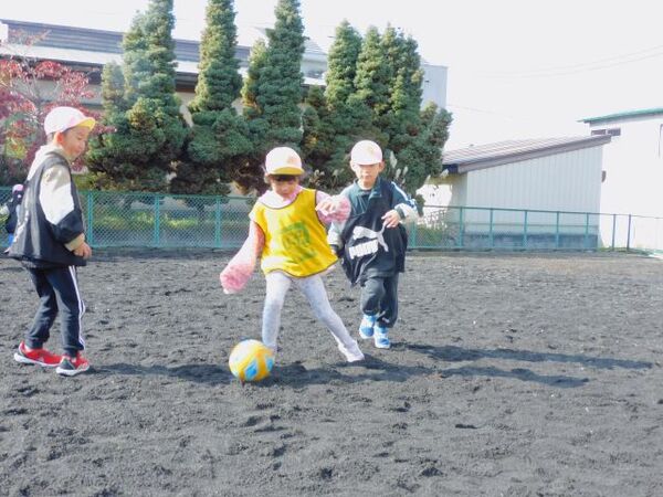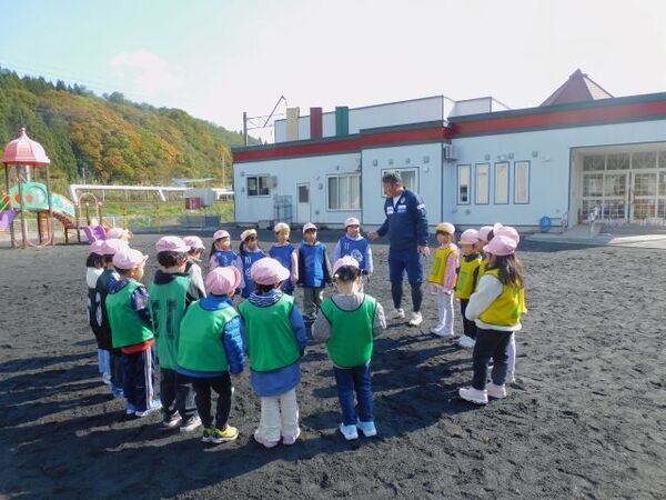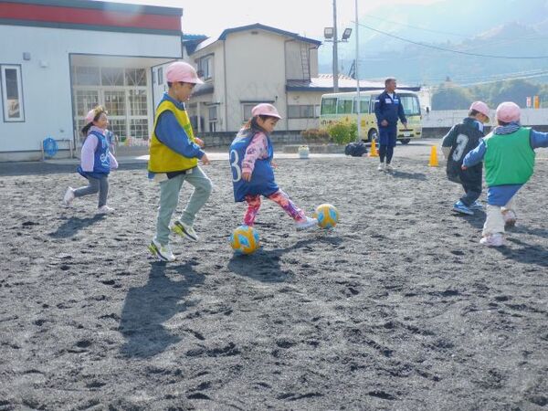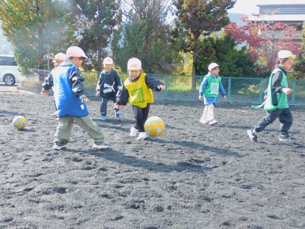 | にじ組5歳児さんが、4月〜10月まで毎月1回リベロ津軽サッカークラブのコーチと楽しんできたサッカー教室⚽。サッカーを通して、体を動かす楽しさを味わっていました。10月にはすっかりドリブルやシュートも上手になり、友だちと試合を楽しめるようにまでなったこどもたちです。 | ||