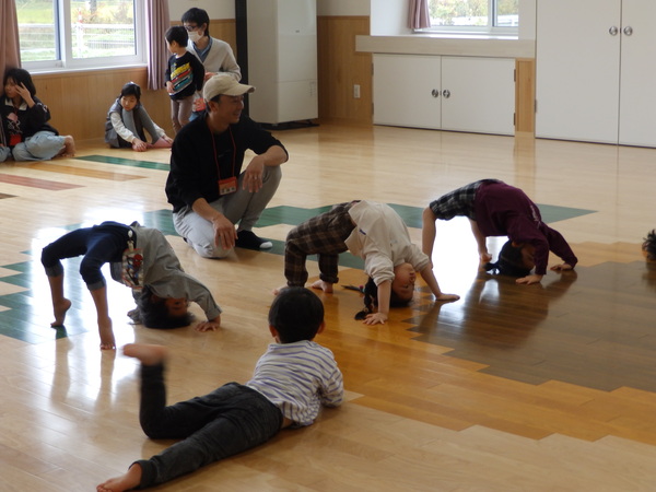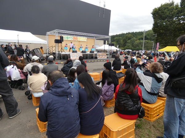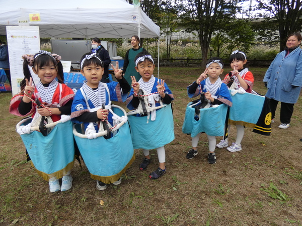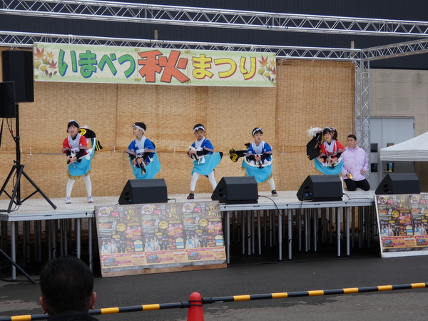 | 今年度最後の荒馬披露です。たくさんの人の前でドキドキ緊張しているこどもたちでしたが・・・ステージ上では堂々と荒馬を跳ねました。今までの練習の成果を発揮し、頑張ってくれましたよ。立派な荒馬にたくさんの拍手をいただきました! | ||