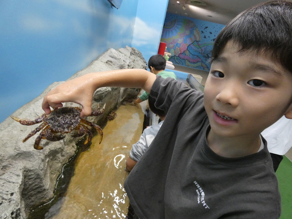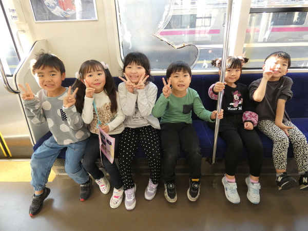 | 年長児が楽しみにしているビックイベント!いろいろな施設へ行き、見学、体験をしました。浅虫水族館では生物を見つけ、発見したら表にシールを貼ったりとみんなで協力しながら活動していましたよ。終始笑顔の子どもたち。公共の施設や乗り物のマナーを意識して行動することができました。 | ||