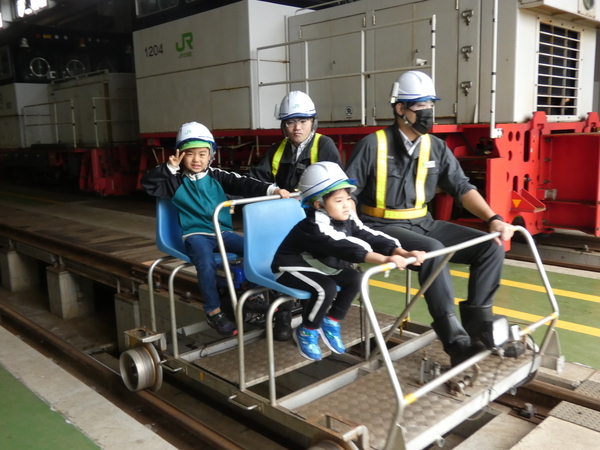 | 今回は奥津軽いまべつ駅、保守基地の2つの施設を見学しました。こどもたちの為にいろいろな体験の準備をしてくださいました。ありがとうございました!こどもたちはたくさんの体験に喜んで活動していました。新幹線の車掌さんがたくさん手を振ってくれて嬉しかったね! | ||