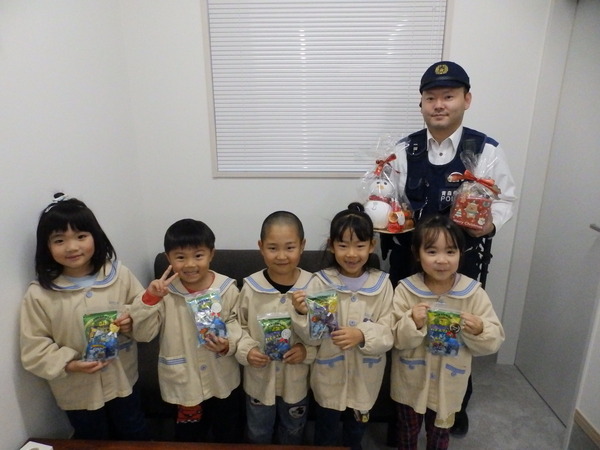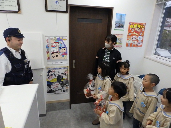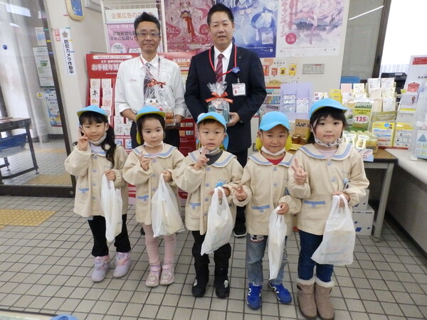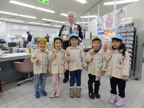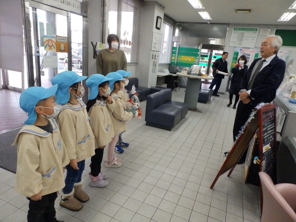 | いつもお世話になっている石川郵便局さん、石川交番さん、JAつがるみらい石川支店さんへ園を代表して年長さんが勤労感謝の慰問に行ってきました(^▽^)/。 「いつもお仕事ご苦労様です!!お体に気をつけてお仕事頑張ってください💪」こどもたちからのエールと手作りプレゼントにみなさん笑顔で応えてくれました。 |