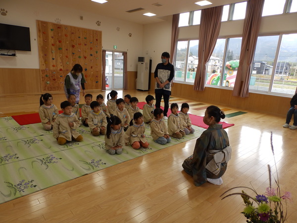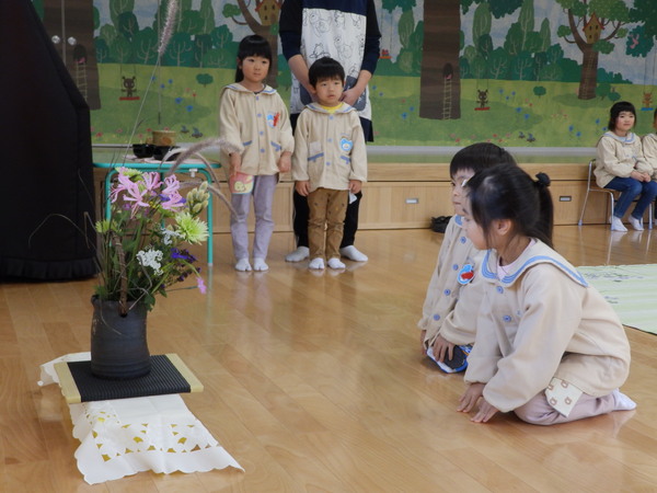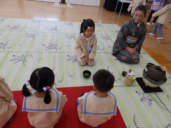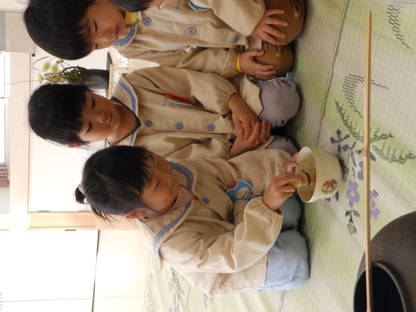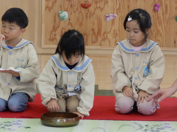 | みんなの健やかな成長を願って・・・七五三のお祝いのお茶会をおこないました☺お家の方も参加してくれていつもよりもちょっぴりドキドキ・・・💦💦ゆっくり流れる時間の中、美味しいお菓子とお茶をいただきました。 いつもお世話になっている先生方へもお茶をシャカシャカ…シャカシャカ…美味しいお茶を点ててごちそうしました。❤ |