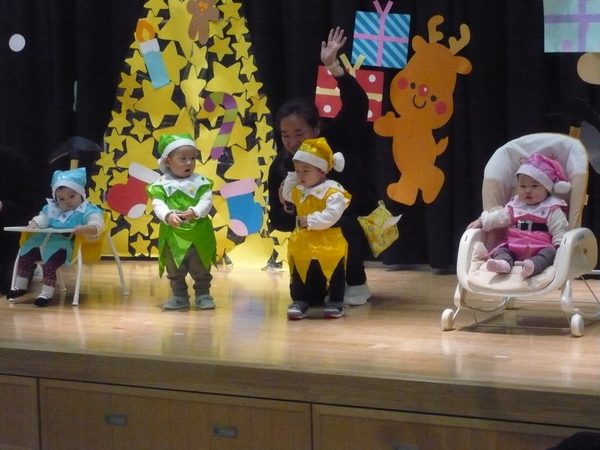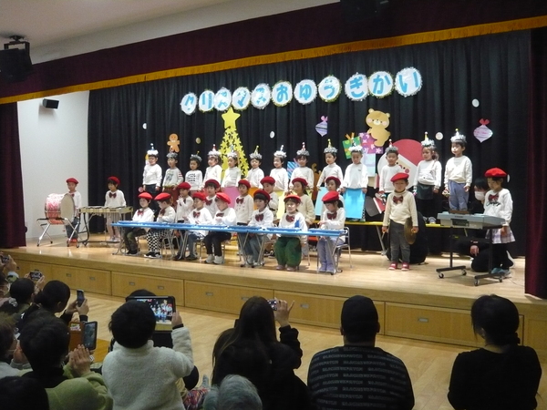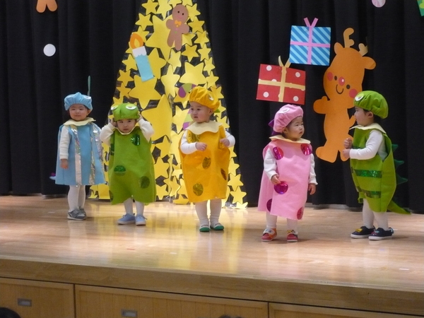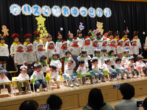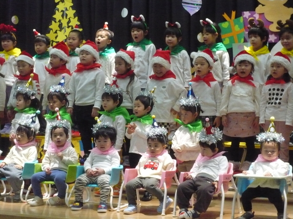 | たくさんのお客さんがきてくれた🎄🎅クリスマスお遊戯会♪🎅⭐。全員が練習の成果を発揮することができ、楽しい時間を過ごすことができました(・∀・)🎵ちょっぴり泣いちゃった未満児さんもとってもかわいい姿を見せてくれました❤。以上児さんは緊張していた子もいましたがたくさんの拍手をもらってとっても嬉しそうでした。最後には・・・お待ちかねの🎅サンタさんが登場して大興奮のこどもたちでした⭐ | ||