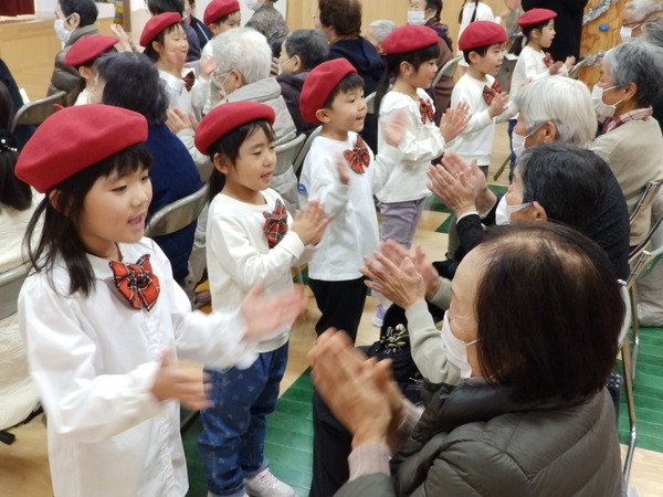| 12月、鰐comeでふれあいクリスマスお遊戯会を行いました。 保護者の皆さんや、来賓・地域の皆さん、子育て中のお父さんお母さんや老人クラブの皆さんなど、たくさんの方が拍手や声援をくださり温かい雰囲気の中、こどもたちは表現することがとても楽しそうで素敵な笑顔をたくさん見せてくれました😊 最後にサンタさん🎅がプレゼント🎁をもって登場するととても嬉しそうでしたよ♪ |